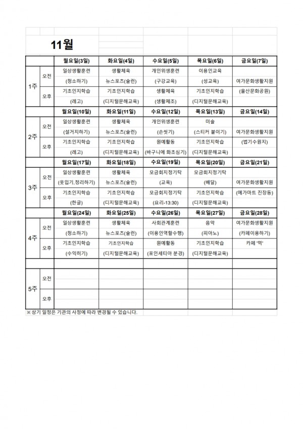 2025년 11월 일정 페이지 정보 작성자 경민주간보호센터 댓글 0건 조회 88회 작성일 25-11-19 09:59 목록 본문 이전글2025년 12월 일정 25.11.19 다음글2025년 10월 일정 25.09.29 댓글 0 댓글목록 등록된 댓글이 없습니다.